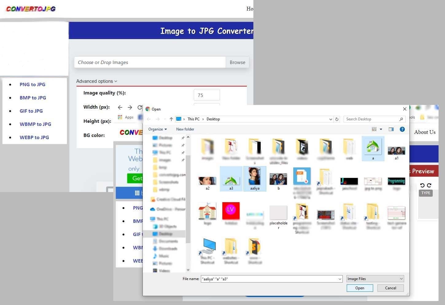 Follow these simple steps to convert PNG, GIF, WEBP, BMP, WBMP, etc images in JPG format/extension...